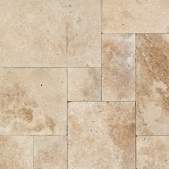 Travertine tiles are available in multiple finishes to suit different design preferences and functional needs. Tumbled travertine offers a softer, weathered look that works well in traditional or rustic designs. Honed and brushed finishes provide a smoother, more contemporary appearance while still maintaining traction. Tiles are available in various sizes and patterns, allowing for custom layouts such as straight-set, French patterns, or modular designs.